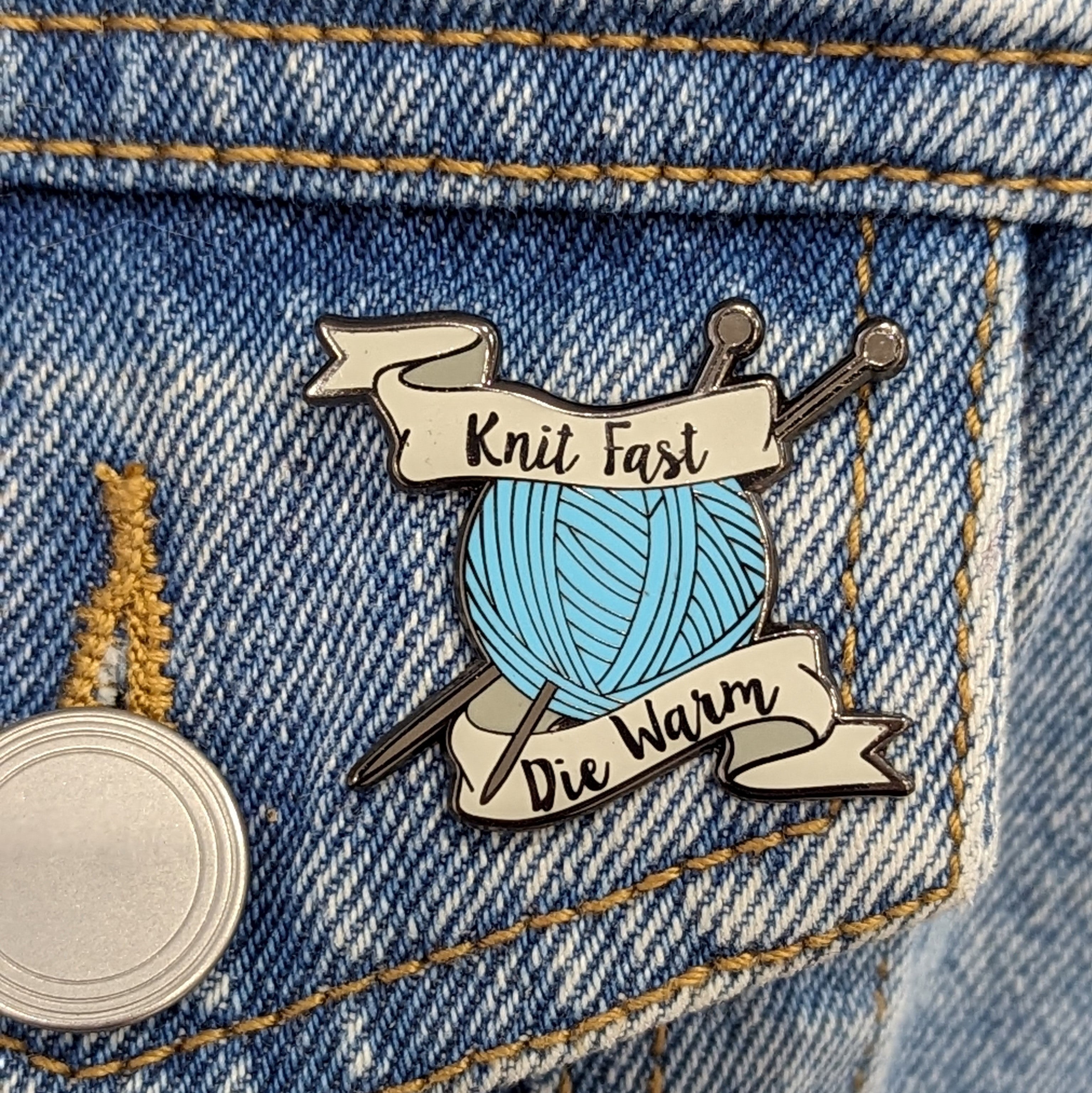Enamel Pin - Knit Fast Die Warm