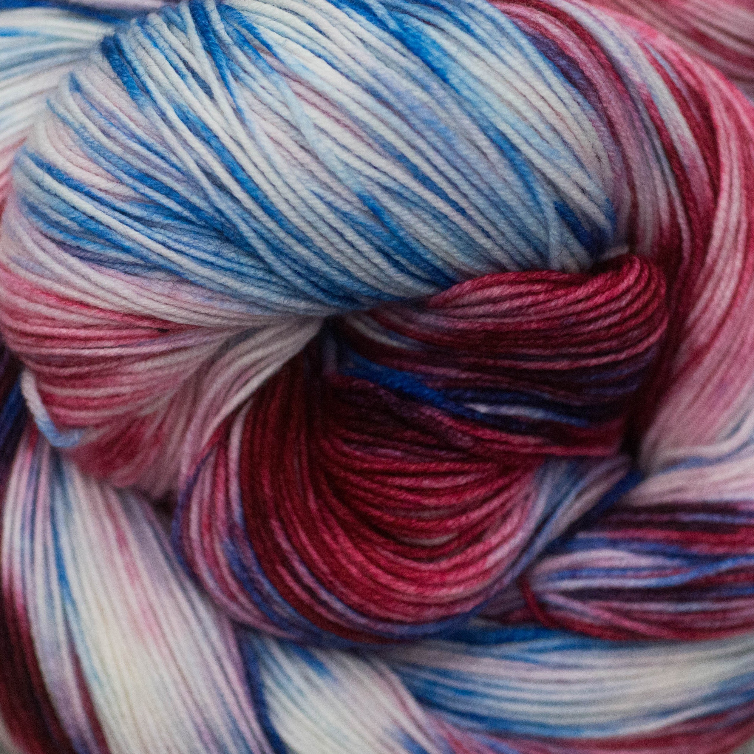 All of our yarns are hand dyed in our professional dye-studio and every batch is one-of-a-kind. Please make sure you purchase enough skeins to finish your project, as future orders of the same colorway will inevitably look a bit different. As with any hand dyed yarn, please expect minor imperfections and some variation from skein to skein (even within the same batch), as each skein is individually dyed.